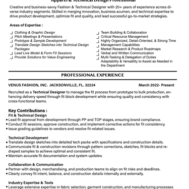 A blend of creativity and technical expertise in fashion design.